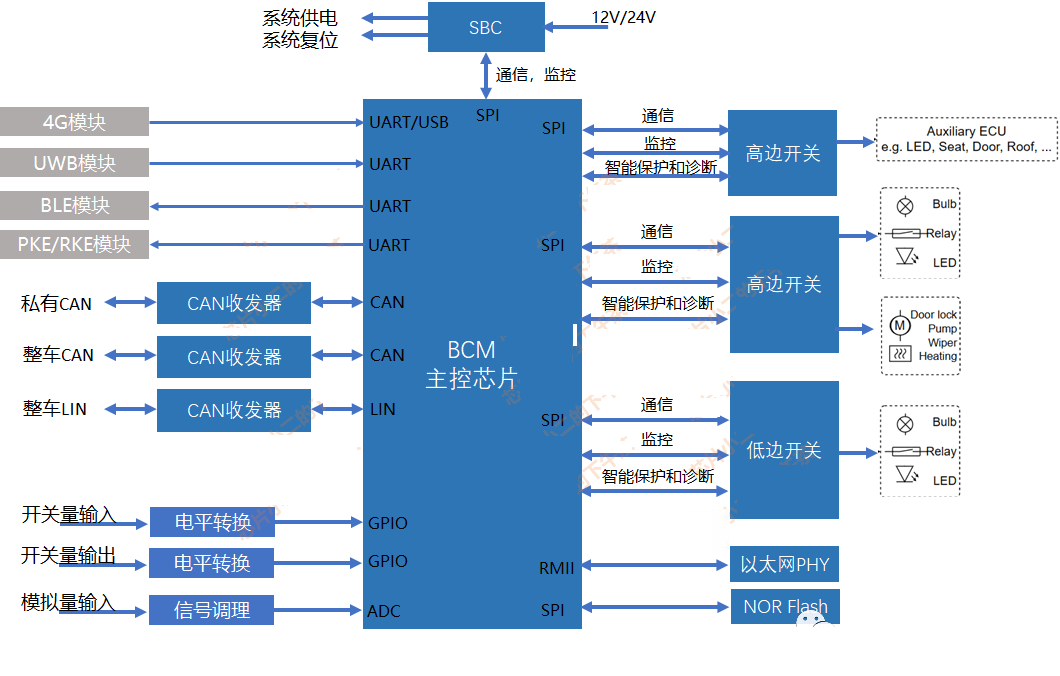 • ‌功能集成‌:整合传统分散的ECU(如灯光控制、雨刮控制、门锁系统等),统一管理信号输入与输出,减少系统复杂度。‌‌2‌‌3